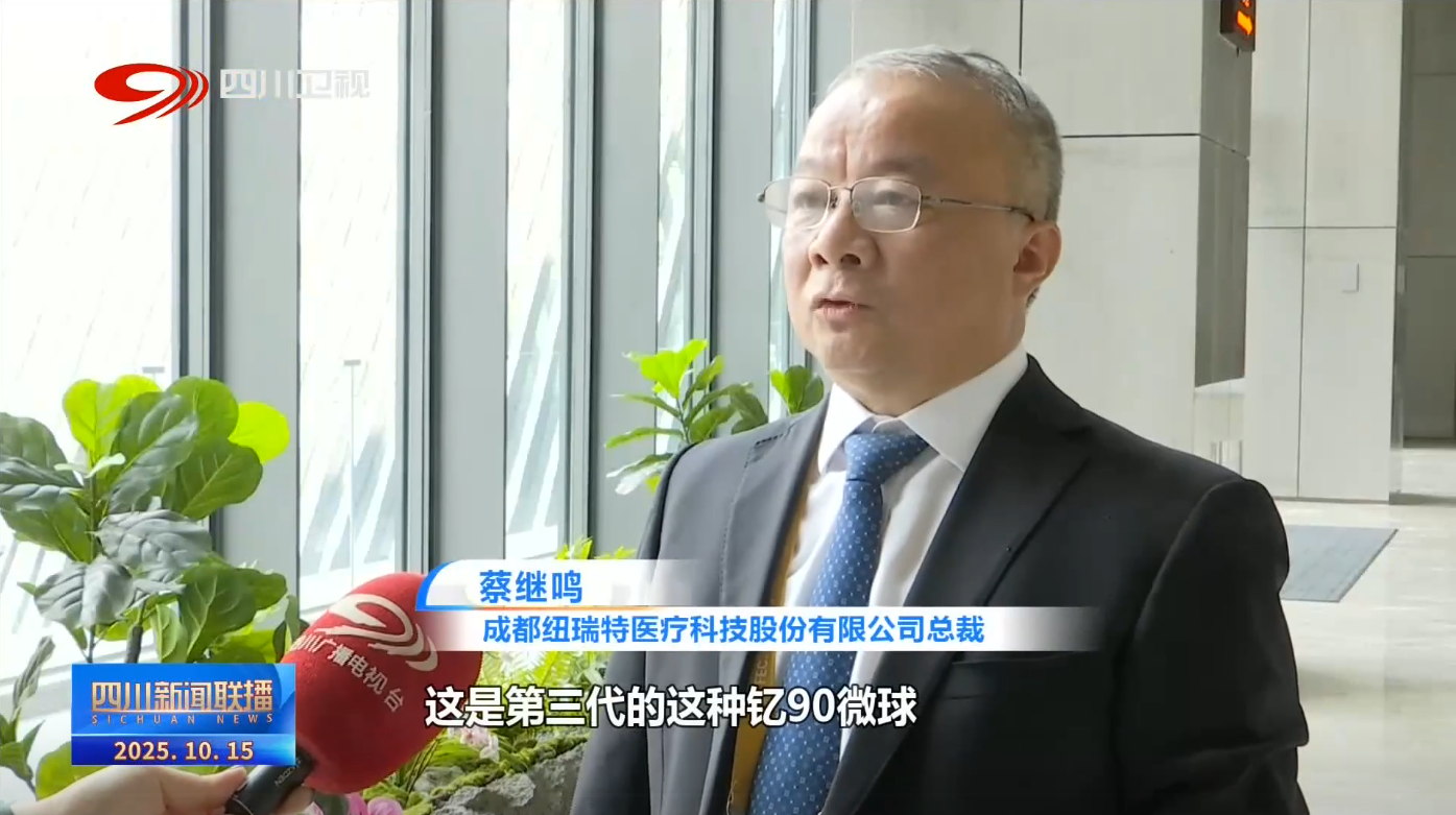 纽瑞特医疗董事长、总裁蔡继鸣出席会议,并在会上分享了专攻肝癌、胰腺癌的创新核药钇[90Y]炭微球注射液的最新进展。分享结束后,蔡继鸣在接受采访时谈到,第三代的钇90微球主要是通过血管介入或者组织介入,把微球放到人体内,近距离地照射并杀死癌细胞,然后得到治病的作用。这款药预计在明年会完成临床试验,力争尽早上市。