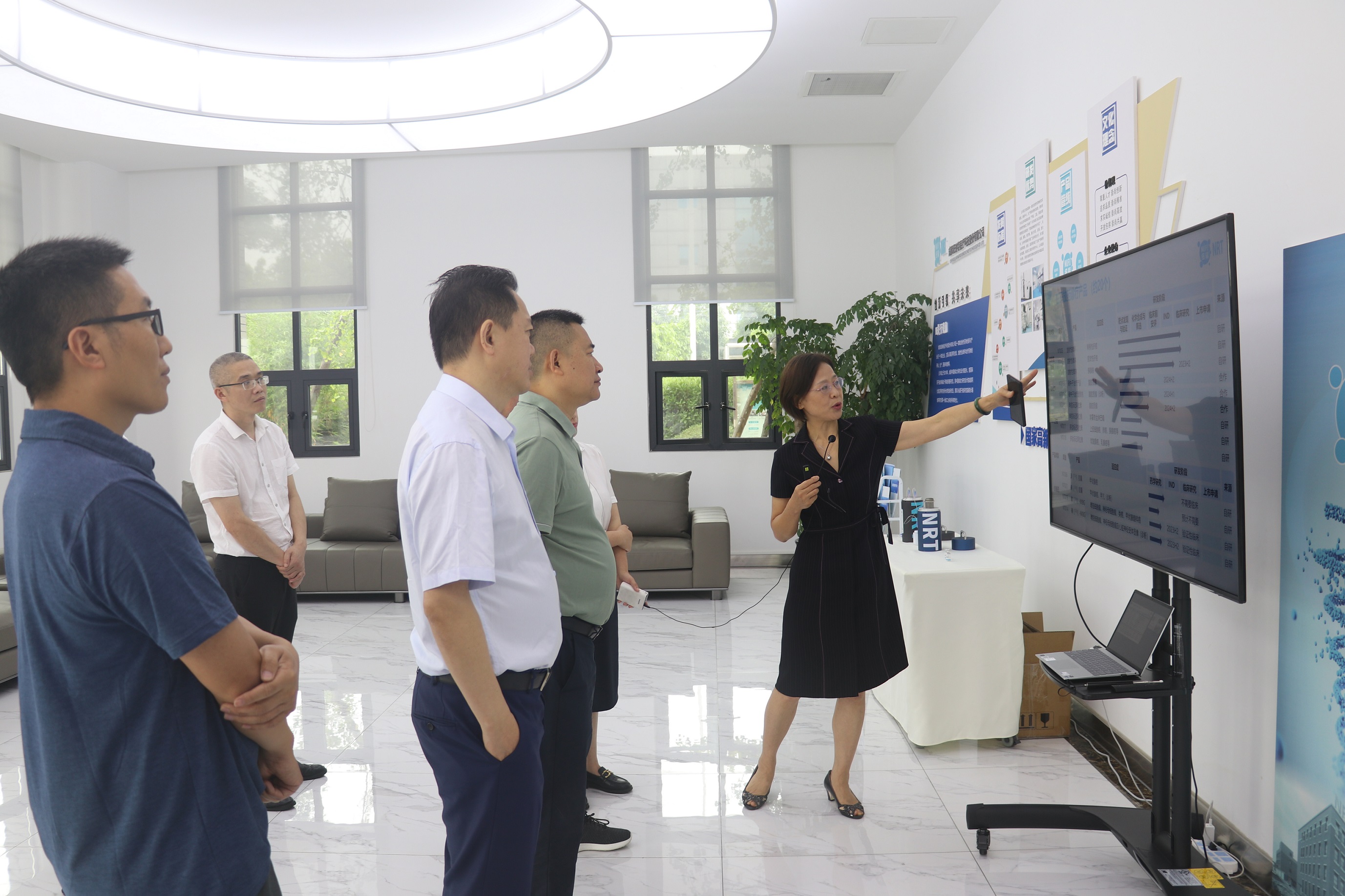 赖才建一行认真听取了纽瑞特的生产经营情况汇报,全面了解了纽瑞特的科研创新、技术攻坚、核心成果及人才引进等情况。调研交流中,赖才建深入询问了钇[90Y]炭微球注射液、锗镓发生器等产品的技术原理和医学价值,并对公司在抓科研、开临床、拓市场、保运输等方面所做的努力表示高度认可和肯定,还为公司后续的发展提出了诸多合理化的宝贵建议。