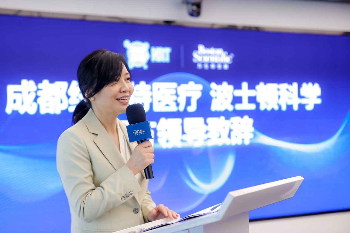 波士顿科学大中华区总裁张珺女士、成都纽瑞特总经理蔡继鸣先生分别代表合作双方签署了战略合作协议。